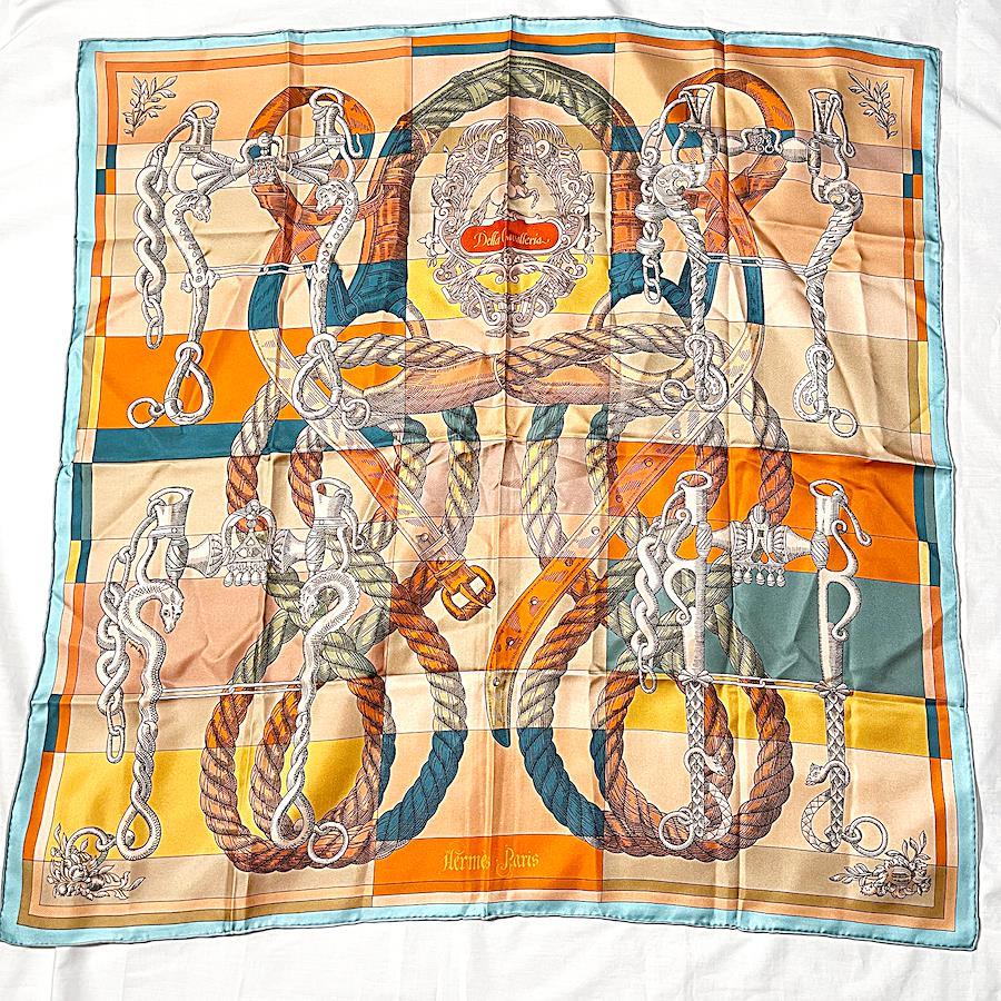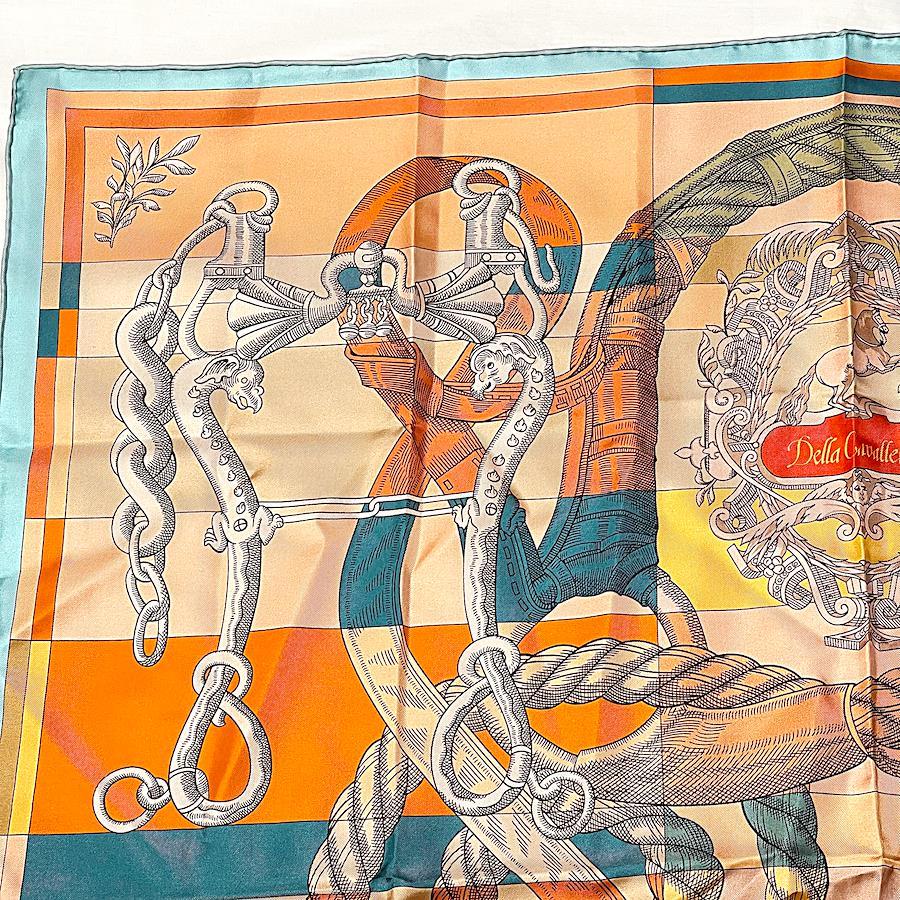 【ブランド】エルメス【品名】カレ90 ダブルフェイス デッラ カヴァッレリア (スカーフ)【対象】レディース【実寸(cm)】およそ87cm四方*多少の誤差はご容赦ください【素材】シルク100%【原産国】フランス【カラー】オレンジ系、マルチカラー【商品状態】あまり使用感の感じられないお品です。中古品につき軽微な傷や汚れなどはご容赦ください。【管理番号】OJ9【付属品】なし【備考】-