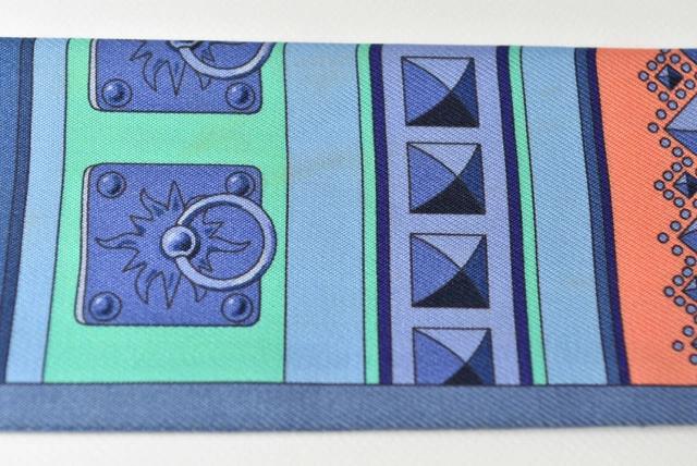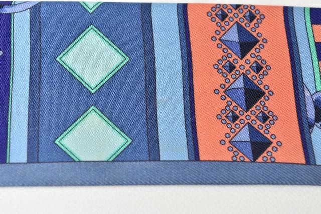 HERMES シルクツイル メドールモチーフ ブルーマルチ