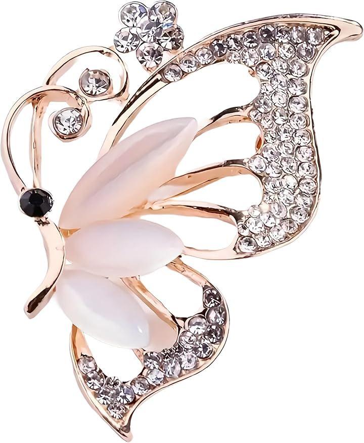 エレガントなデザイン: 高級感のあるジルコンとラインストーンを使用した蝶のブローチ。