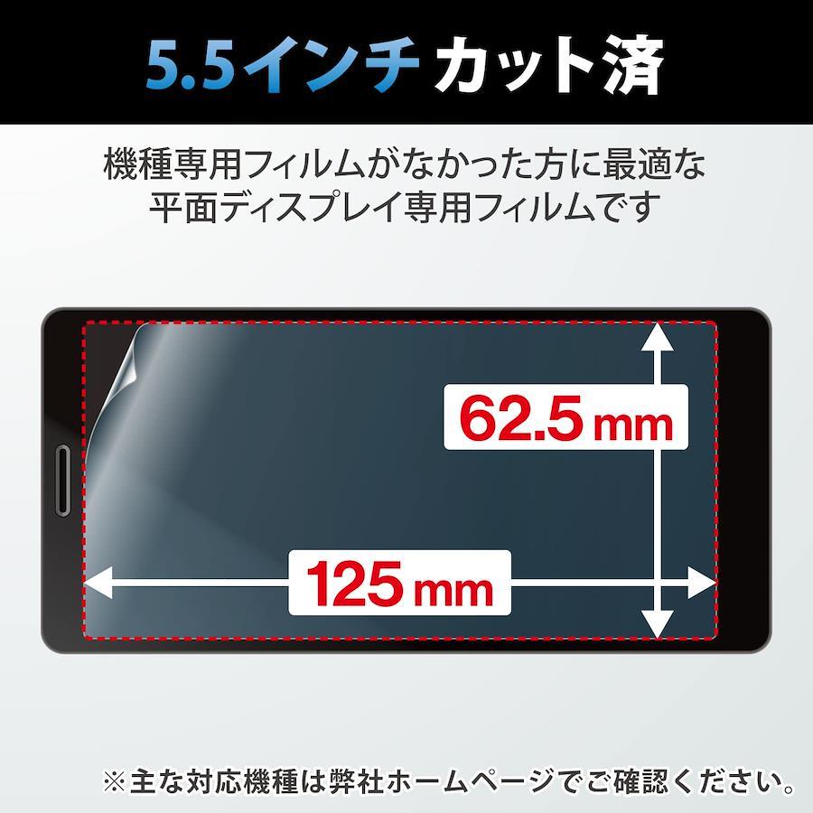 【説明】■5.5インチスマートフォンの液晶表示部を傷や汚れから守る、指紋防止タイプの高透明フィルムです。■機種専用の液晶保護フィルムが見つからない方にも最適です。■表示画面サイズ5.5インチ(画面解像度2160×1080ドット)に対応しています。 ※湾曲した液晶画面には対応しない場合がありますので、必ずエレコムホームページから対応表をご確認ください。■つやのある高透明タイプで、液晶表示部を鮮やかに彩ります。■貼り付け面にシリコン皮膜をコーティングし、接着剤や両面テープを使わずに貼り付け可能な自己吸着タイプです。貼りやすく、貼り直しも可能です。■時間の経過とともに気泡が目立たなくなる、特殊吸着層を採用したエアーレスタイプです。■小さな気泡ができたときには、指などで押し出すことで気泡を抜くことができます。■指紋・皮脂汚れが付きにくく、残った場合でも簡単に拭き取れる指紋防止加工を施しています。■ハードコート加工により、フィルム表面の傷を防止します。■フィルムに抗菌機能を施し、細菌の繁殖を防ぎます。■こちらの製品は表面上における細菌の増殖を抑制、あるいは阻害する性能を有したもので、財団法人日本規格協会(JSA)が定める抗菌性試験に準拠したものです。 ※抗菌とは、製品の表面上に存在する細菌の増殖を抑制することです。JIS(日本産業規格)では抗菌加工されていない製品の表面と比較して、細菌を99%以上抑制出来ている場合、その製品に抗菌効果があると規定しています。■液晶表示部の形状に合わせたサイズにカット済みなので、パッケージから取り出してすぐに使用可能です。■フィルムを貼ったままでも本体操作ができる、タッチスクリーン入力に対応しています。■フィルムがキレイに貼れるホコリ取りシール、クリーニングクロスが付属しています。■自社環境認定基準を1つ以上満たし、『THINK ECOLOGY』マークを表示した製品です。■環境保全に取り組み、製品の包装容器が紙・ダンボール・ポリ袋のみで構成されている製品です。
