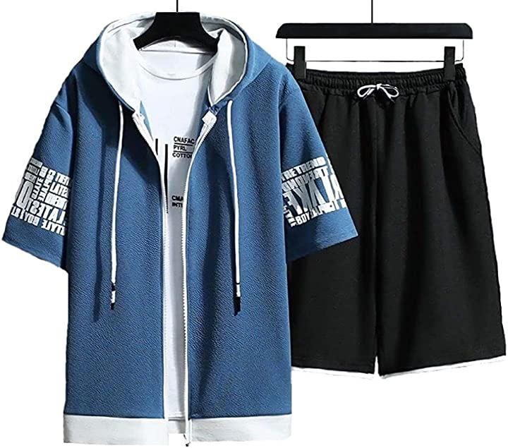 *シンプルかつスポーティーなスタイルの半袖スウェットパーカーと五分丈ハーフパンツの2点セット**これからの季節にちょうど良い綿混合のさらっとした生地なので、吸水性のインナーのシャツもピッタリのアイテム*、