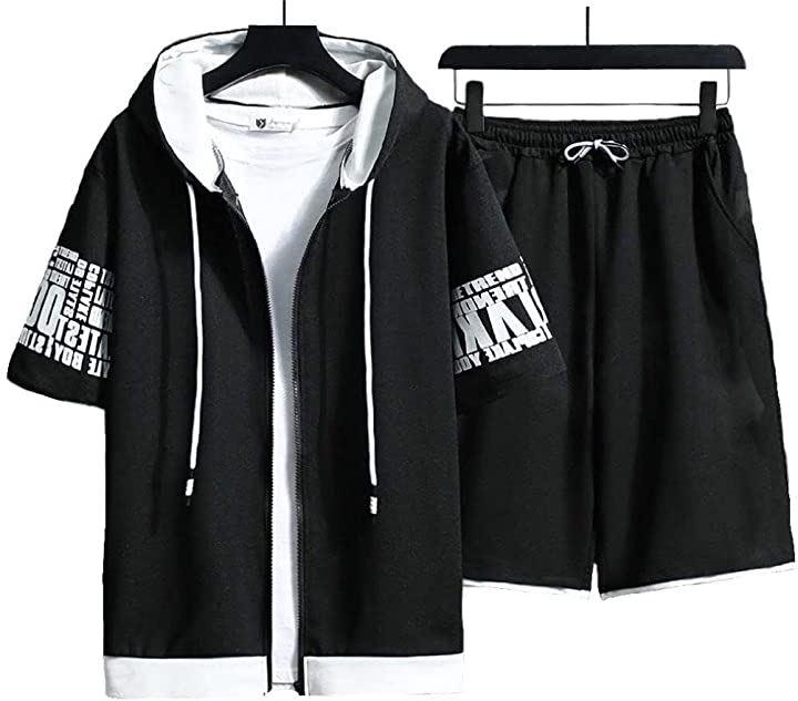 *シンプルかつスポーティーなスタイルの半袖スウェットパーカーと五分丈ハーフパンツの2点セット**これからの季節にちょうど良い綿混合のさらっとした生地なので、吸水性のインナーのシャツもピッタリのアイテム*、