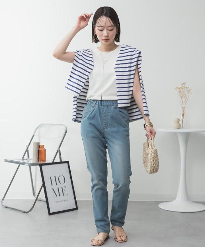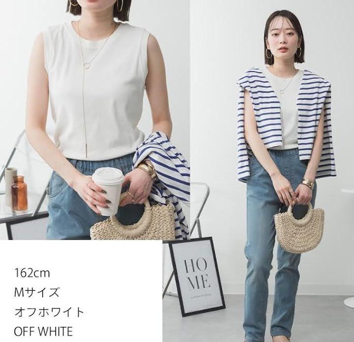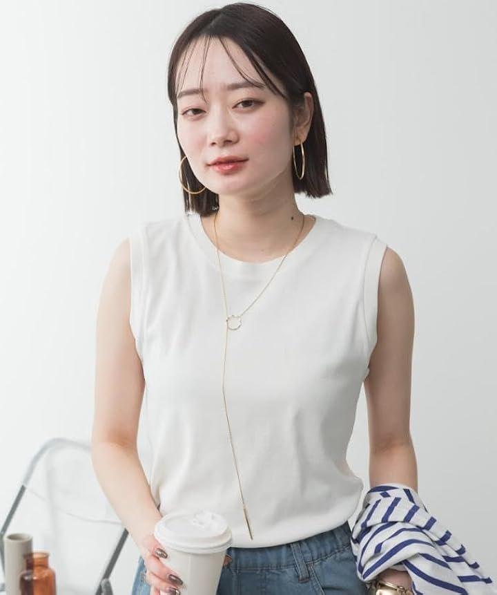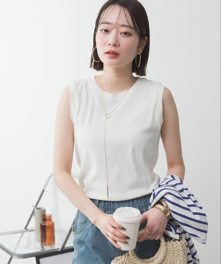ノースリーブの肩幅のシルエットがシンプルなのにおしゃれに見せ、二の腕も細く見せてくれるデザイン。