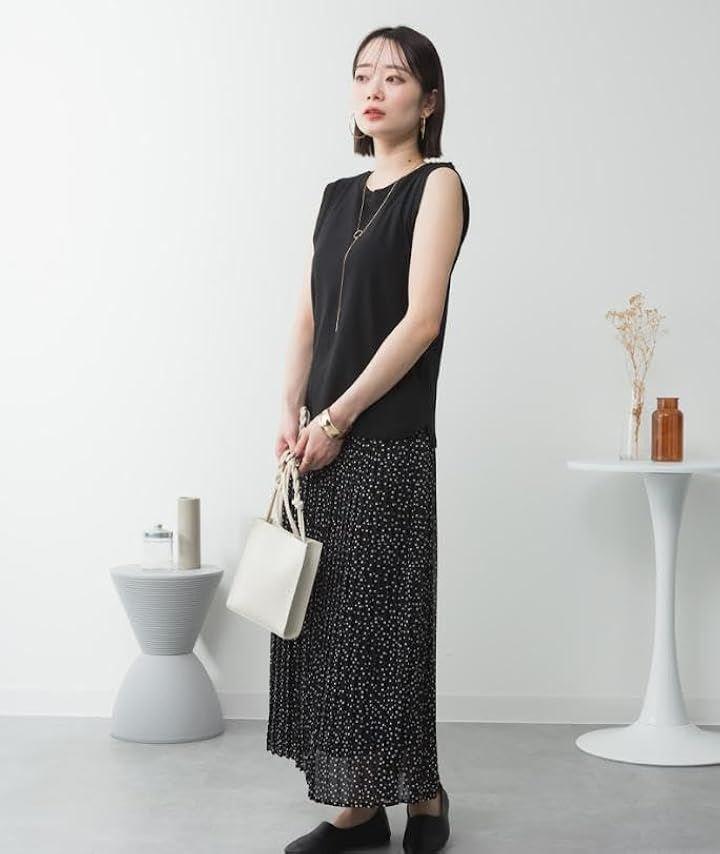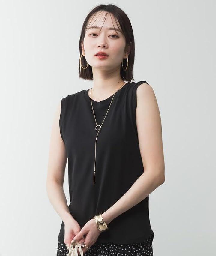ノースリーブの肩幅のシルエットがシンプルなのにおしゃれに見せ、二の腕も細く見せてくれるデザイン。