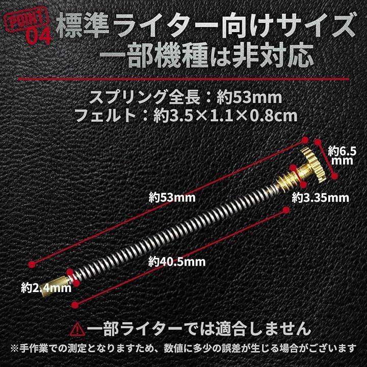 また、フリントスプリングは一般的なオイルライターに対応する約35mmサイズですが、古いモデルではネジ部が合わないことがございますので、交換前にご確認ください。