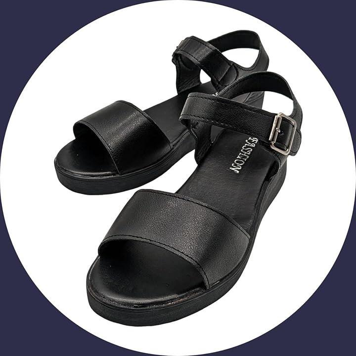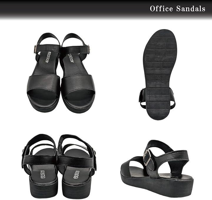 やや厚底でシンプルデザインのおしゃれなレディースオフィスサンダルです。