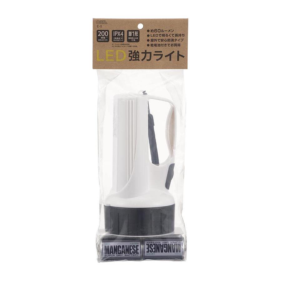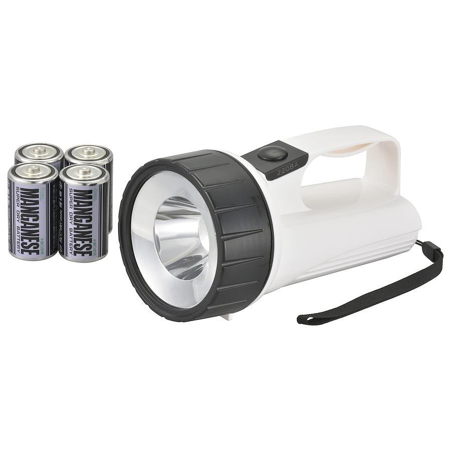 【 特 長 】● 明るさ約60ルーメン● 連続点灯200時間(アルカリ乾電池使用時)● LEDで明るくて長持ち● 屋外で安心防滴タイプ● 単1形乾電池4本付属