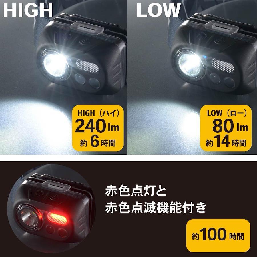 ●手をかざすと自動で点灯・消灯するモーションセンサースイッチ搭載 ●アウトドアや作業に便利、手が汚れた状態でも点灯・消灯がラクラク ●赤色点灯と赤色点滅機能付き ●HIGH/LOWの2段階調光 ●モーションセンサー中に調光可能 ●ヘッド部角度調整可能 ●落下耐性1m ●照射距離約66m ●連続点灯約6~14時間