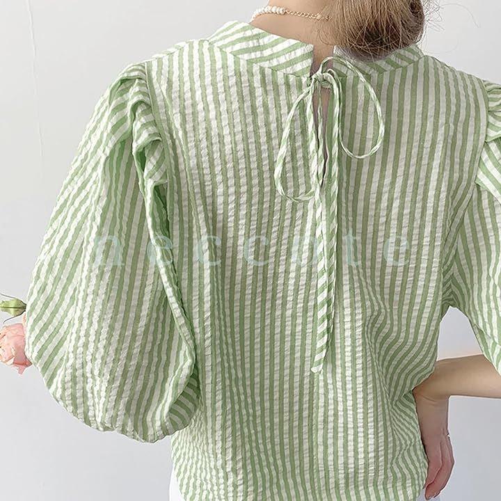 袖はタックを施した立体的なボリュームのあるパフスリーブでシルエットもかわいく、女性らしさを演出。