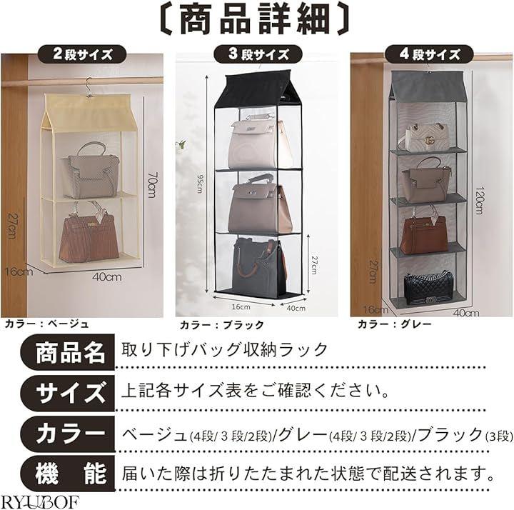 「選べるサイズ&しっかり収納」 吊り下げ式バッグ収納は、2段・3段・4段の3タイプ展開。