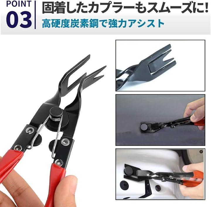 さまざまなサイズ・形状のプライヤーがセットになっており、狭いスペースや固着したコネクター、クリップもスムーズに取り外すことができます。