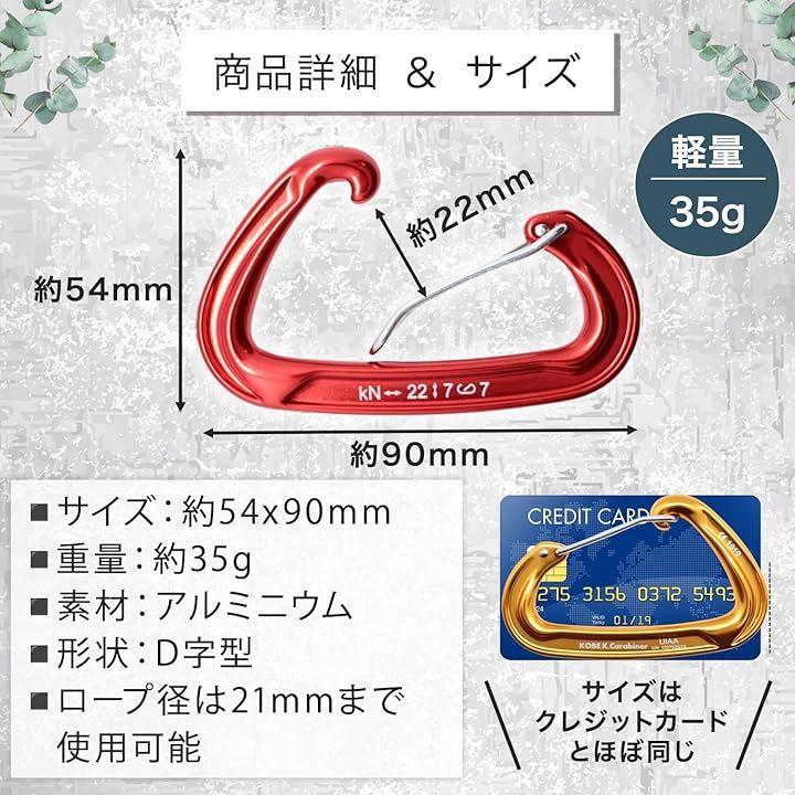 「素材」アルミ A7075 「重量」35g/個 「サイズ(約)」全長:90mm 幅:54mm *ロープ径:21mmまで