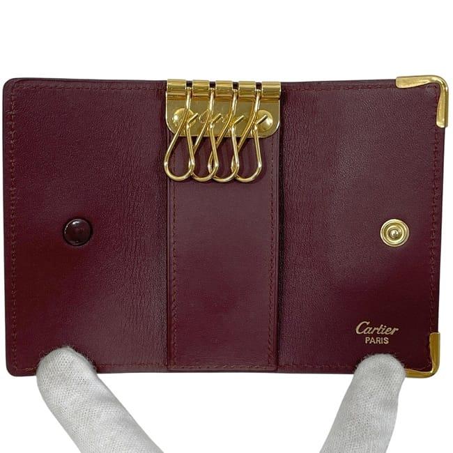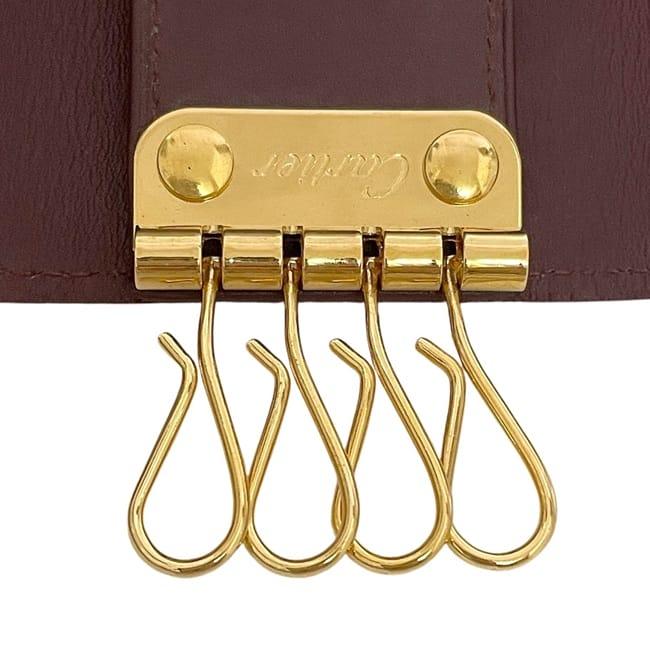 ☆---- 商品について ----☆カルティエ 4連 キーケース ec-24677 ボルドー マスト 美品 レザー 中古 Cartier ワンポイント ロゴ ホック 鍵 ホルダー ヴィンテージ 定番 人気 レディース メンズ 男女兼用 ゴールド金具 ワインレッド シンプル ロゴ刻印 赤 ブランド 本物 鑑定済み