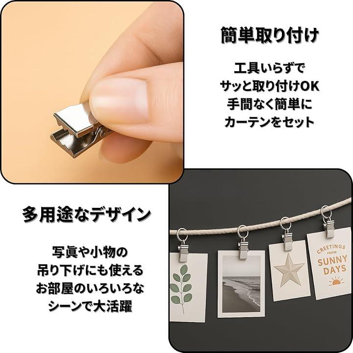 「強力な保持力」このカーテンクリップは、ステンレス製で耐久性があり、重いカーテンもしっかりと固定します。