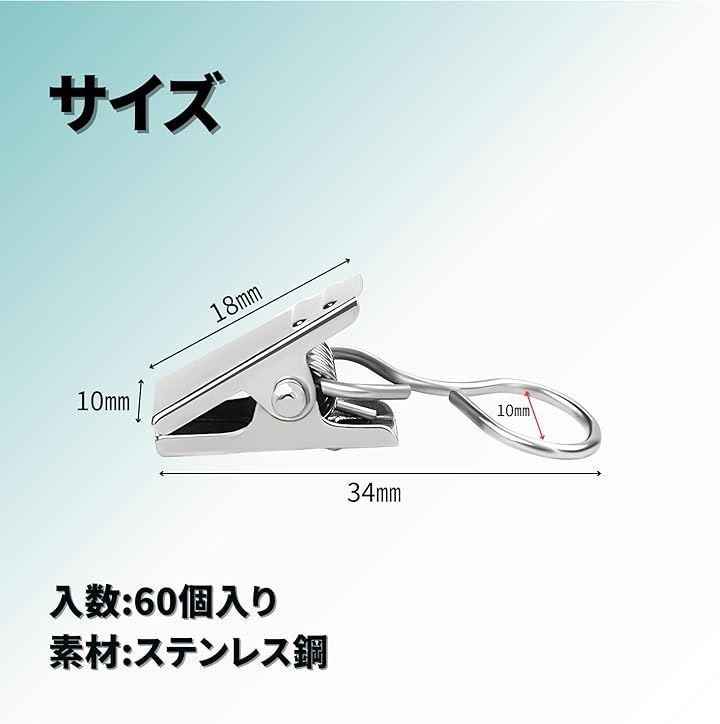 「多用途なデザイン」60個入りのセットは、カーテンだけでなく、写真や装飾品の吊り下げにも利用可能です。