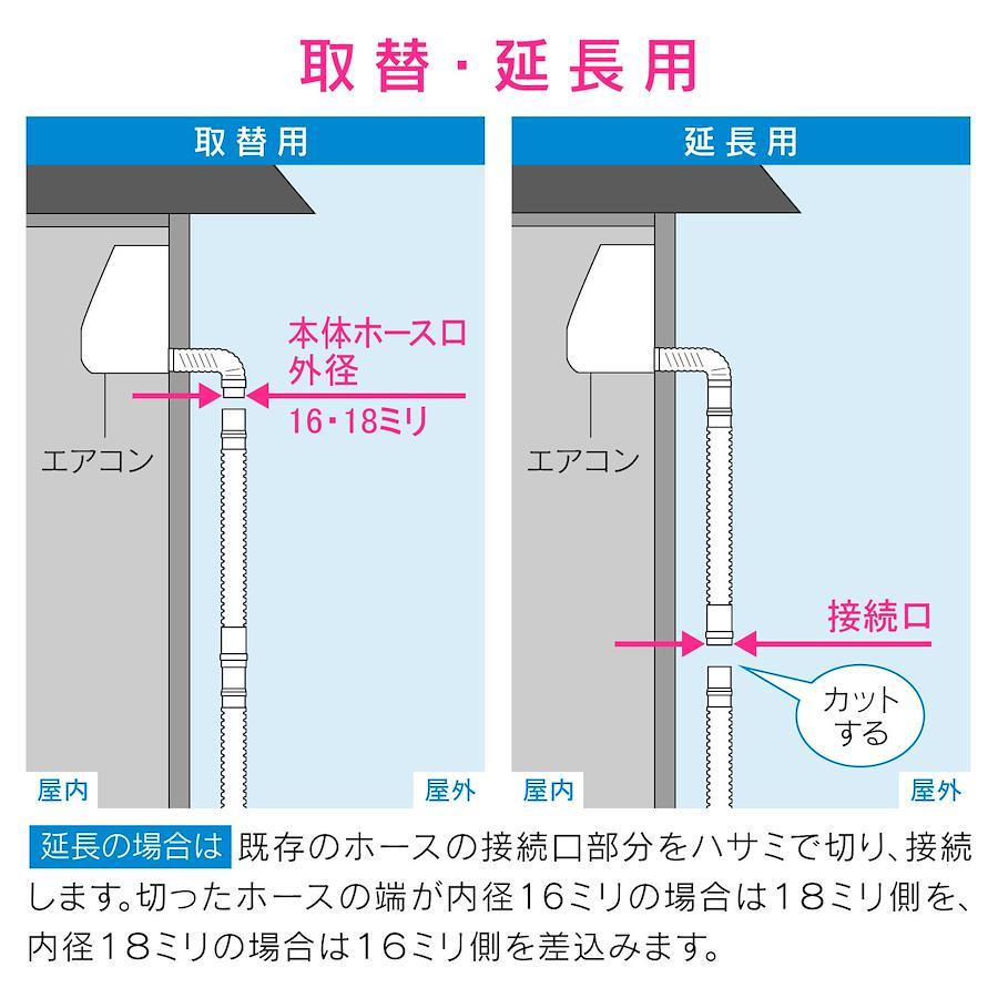 3営業日以内に発送≪新品未開封品≫:◆補修や延長に最適なエアコン用ドレンホース、ドレンホースに取付ける逆止弁・防虫キャップのセット◆エアコンの本体ホース口外径16・18ミリに取付けできる◆約50cm毎に接続口を設けており、ホース接続部内径16・18ミリに取付けできる◆外気の侵入を防ぎ、不快なポコポコ音を防ぐ◆臭気と害虫の侵入を防ぐことができる◆両面テープで地面に固定するため、巻グセによるホースの跳ね上がりを防ぐ◆ホース長さ 3m