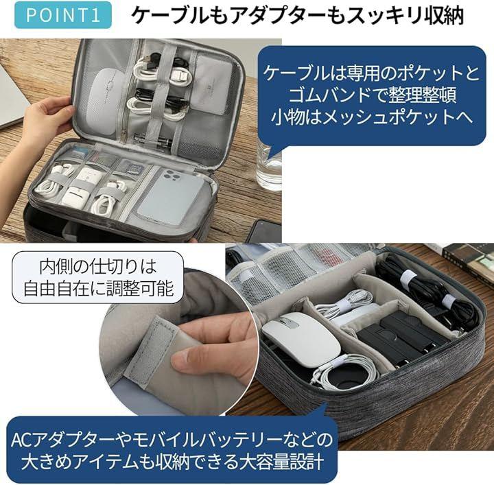 「もう散らからない。探し物ゼロへ。」PC周辺機器、ケーブル、充電器、マウス…全部まとめて収納。大容量ガジェットケースは3層構造で仕分けも楽々。