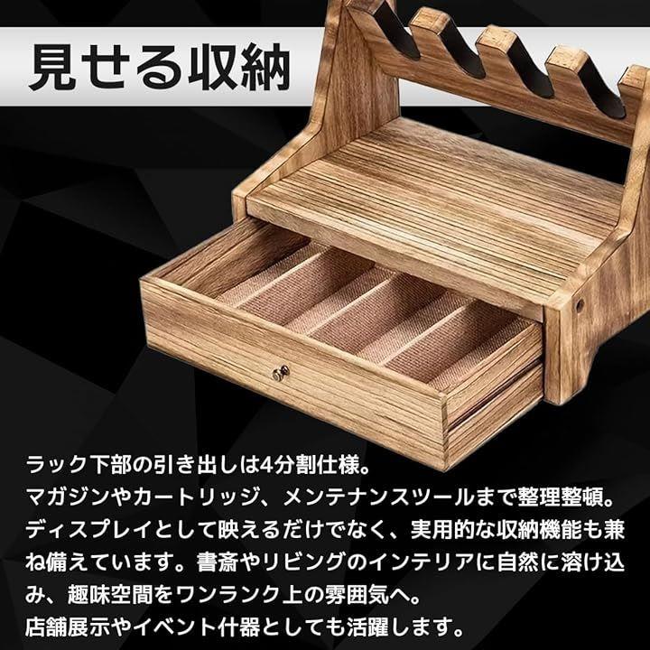 軽量でありながら、美しい木目が重厚な雰囲気を醸し出す「桐」を使用した、ハンドガン専用の木製ガンラックです。