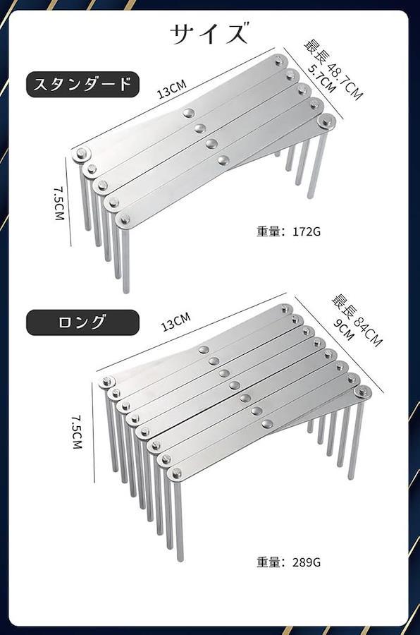 「スタンダード商品サイズ」高さ7.5cm、幅13cm、長さ5.7cm~48.7cm、重量172g