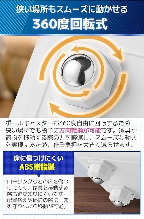 「ABS樹脂製」ローリングなどの床を傷つけにくく、家具を移動する際も跡が残りにくいです。
