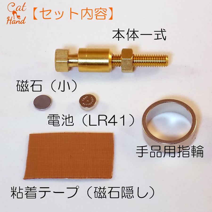 「さあ、こちらのナットにご注目ください」 観客の視線が注がれる中、ナットがひとりでに回り始め・・・ やがてボルトから外れてぽとりと落下する。 そんな不思議なマジックを誰にでも実演可能にした 優れものの手品用品です。 小さなボルトに組み込まれた精巧なギミックが、あなたを一流マジシャンに変身させてくれます。 さらに、こちらの商品には特別にマジック用の指輪をお付けしていますので より自然な演技・演出が可能となっています! 今後、入荷の予定は未定です。 他の方に先を越される前に今すぐ購入ボタンをクリックして、 商品の到着を楽しみにお待ちください! 型番:CH-HOUN131108 JAN:4571407210263 この商品は、Cat Hand正規品です。【商標登録済み:第5687767号】 輸入品をベースに一部加工を施し、検品・選別を行ったうえで、JANコードとオリジナルロゴを付与し販売しています。 一般的な輸入直販品よりは高品質を維持するよう努めておりますが、現実的な範囲で加工選別を行っている関係上、本体の小傷等がある場合もございます。 また、元となる製品品質を大きく超えることはなく、厳密に純国産製品と比較した場合には劣る部分もございますので、価格等を併せて考慮の上、購入をご検討頂ければ幸いです。 触れずにボルトからナットが外れる不思議なマジック☆誰でも簡単に実演出来ますが、インパクトの大きい手品です! 新年会・忘年会・歓送迎会などの余興にオススメ! ★特別に手品用の強力磁石指輪(19号/1,000円相当)をセットにしています! もちろん、他のマジックにもお使い頂けます! 【注】商品の性質上、動作時に若干の振動音が発生します。MCや音楽などを交えた実演をお勧め致します。