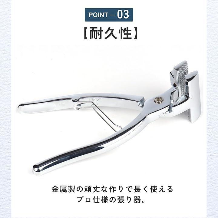 「耐久性」金属製の頑丈な作りで長く使えるプロ仕様の張り器。