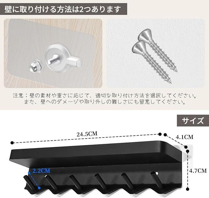 「幅広い用途」多目的に使用可能なキーハンガー。家族みんなの鍵をまとめて収納したり、小さな日用品などを吊るすのに重宝するの多連キーフック。