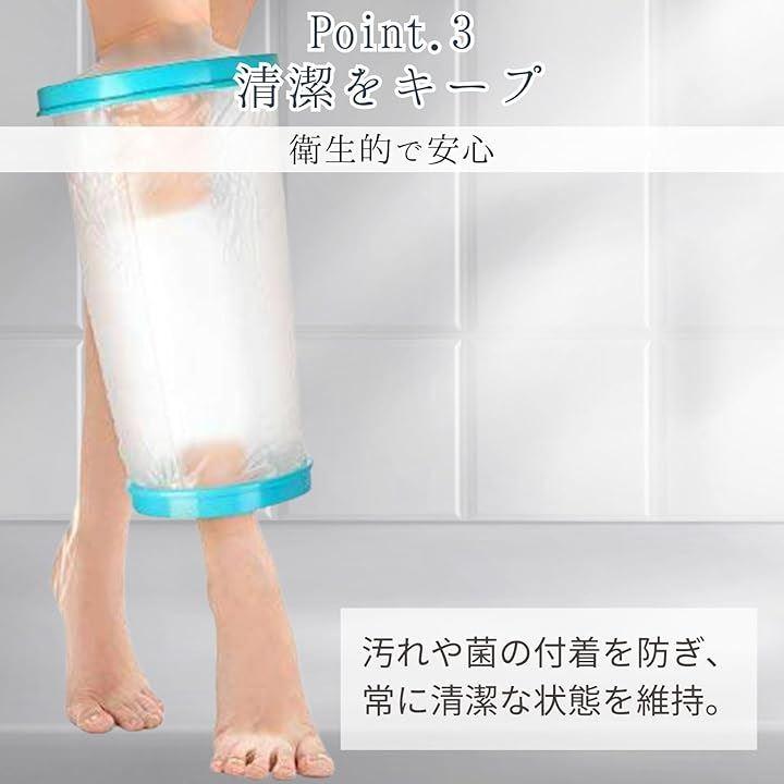 「完全防水でギプスをしっかり保護」ギプスや包帯を濡らす心配がなく、安心してシャワーやお風呂に入ることができます。