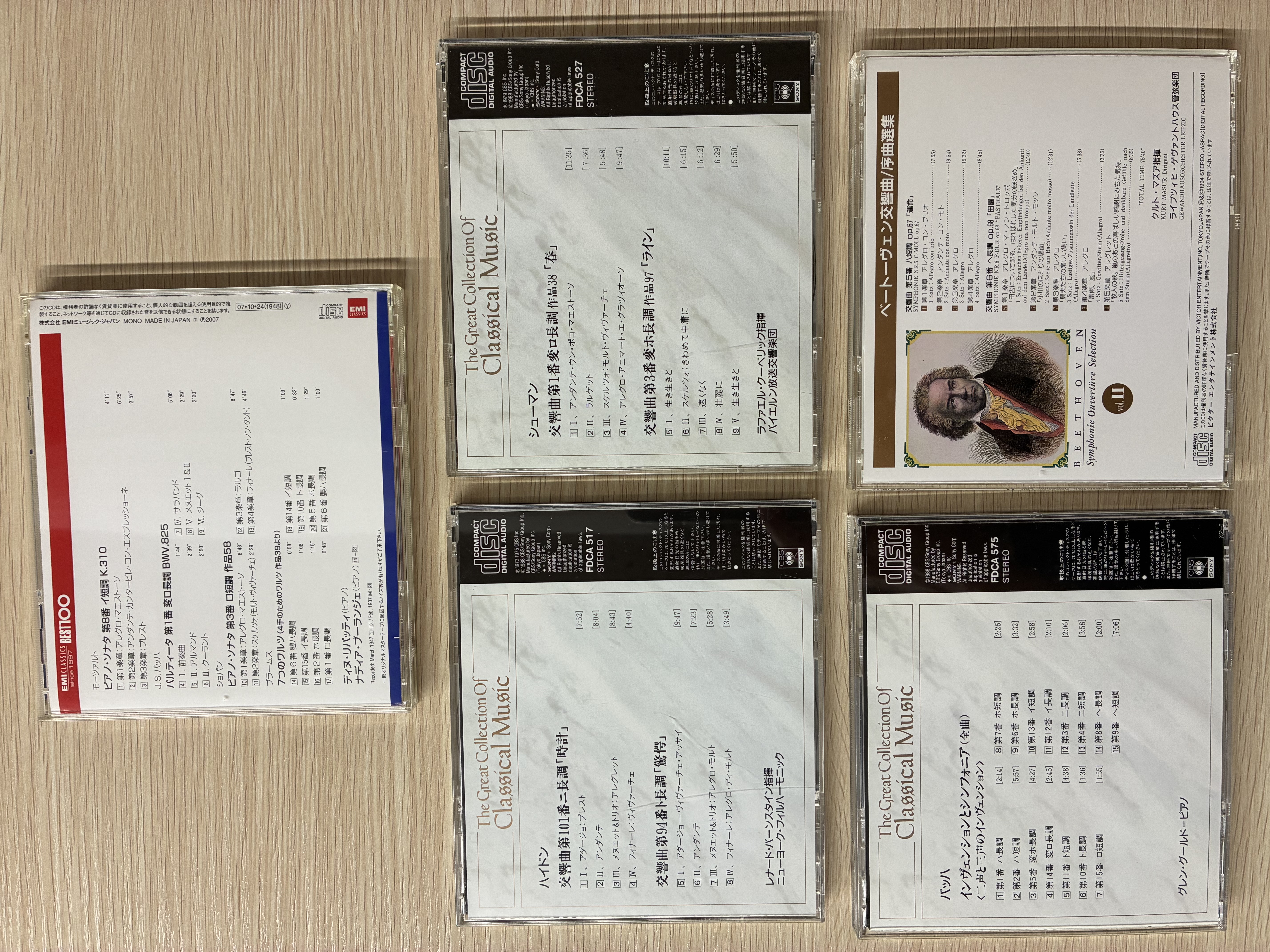クラシック音楽の名曲集、著名な作曲家のCDアルバム5枚セットです。