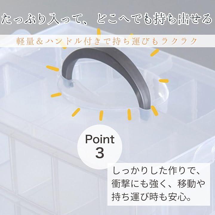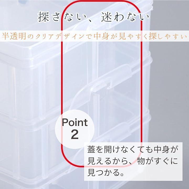 「半透明のクリアデザインで中身が見やすく探しやすい」どこに何があるか一目でわかるから、子どもでも簡単に使いこなせる。