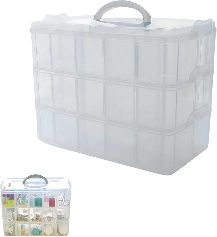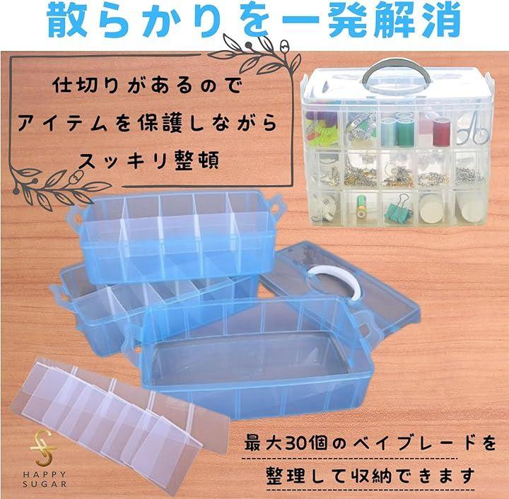 クリアケース ベイブレード 収納 収納ボックス パーツ入れ プラスチック 持ち運び 半透明 仕切 小物 部品 持ち手 30個収納
