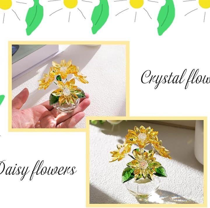 幸運を呼ぶクリスタルデイジー。部屋を明るく彩るグッズ。繊細なカットが美しいクリスタルのデイジーの置物。