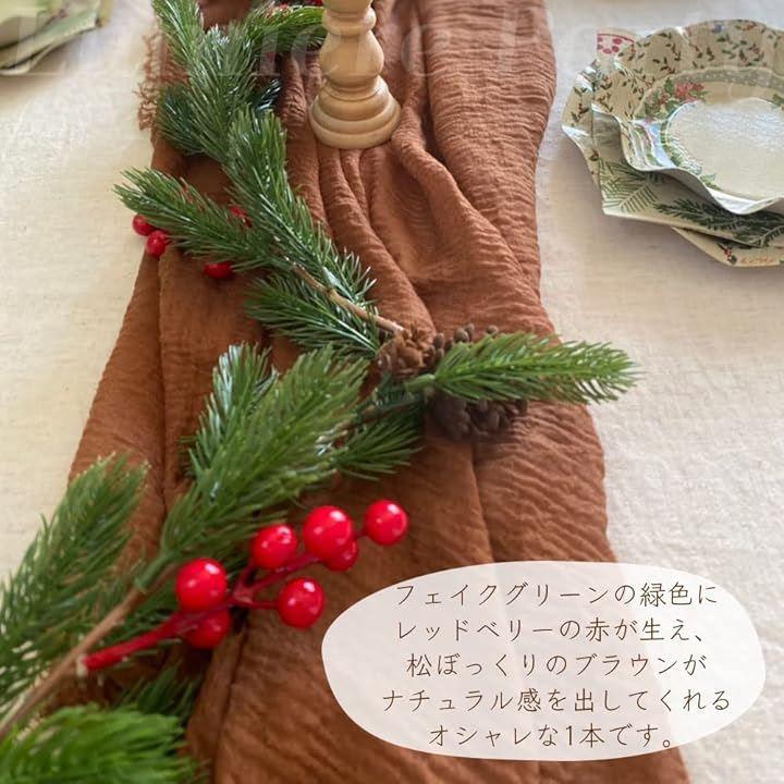 「クリスマスの飾り付け」フェイクグリーンの緑色にレッドベリーの赤が生え、松ぼっくりのブラウンがナチュラル感を出してくれるオシャレな1本です。