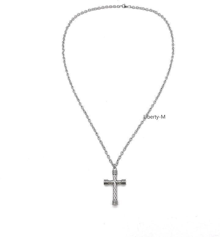大人気 定番のクロスネックレス。素材はステンレスで存在感もありどんなスタイルでもお使いいただけます。