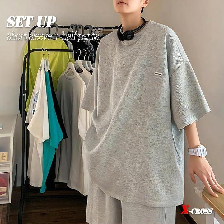素材 ポリエステル 軽やかな素材で軽快にに動けるクルーネックシャツとハーフパンツのセットアップ。