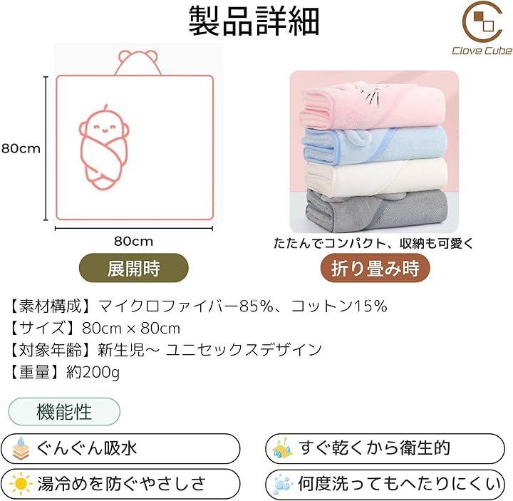 このおくるみは、マイクロファイバーの高い吸水性で水分を素早く吸収し、パパママの負担を軽減。