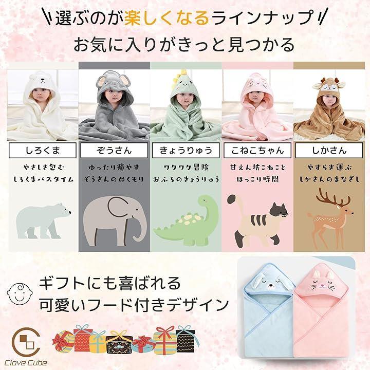 ユニセックスで可愛いデザイン: しろくま、ぞうさん、きょうりゅう、こねこちゃん、しかさん。