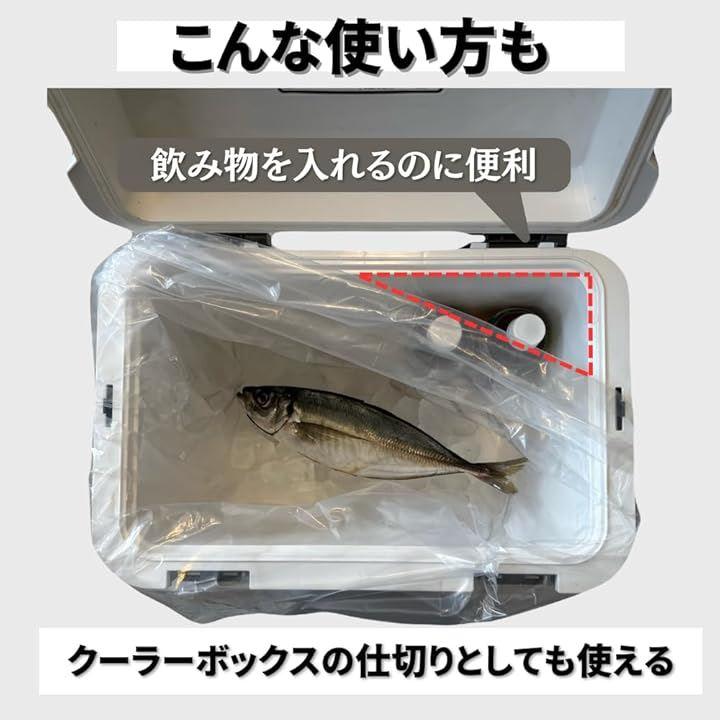 釣り具収納やゴミ袋としても大活躍 この商品は単なるクーラーボックスガードにとどまらず、厚手のビニール素材を活用してゴミ袋や釣り具収納袋としても使用可能。