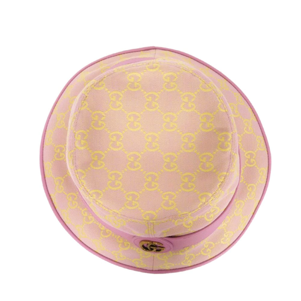 | グッチのGGパターンにダブルGのレザートリムをあしらった「GGキャンバス バケットハット」帽子です。 |