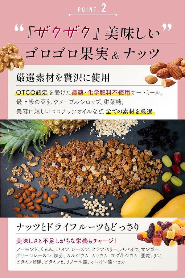 グルテンフリーはもちろん、砂糖不使用、糖質40%カット(一般的なグラノーラと比較)、ヴィ―ガンにも対応、保存料・着色料・香料ももちろん無添加。