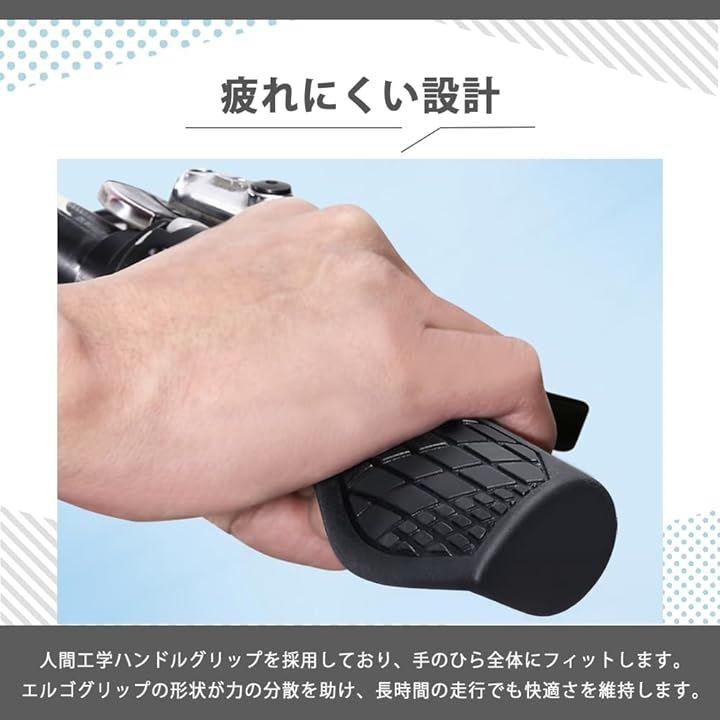 エルゴグリップの形状が力の分散を助け、長時間の走行でも快適さを維持します。