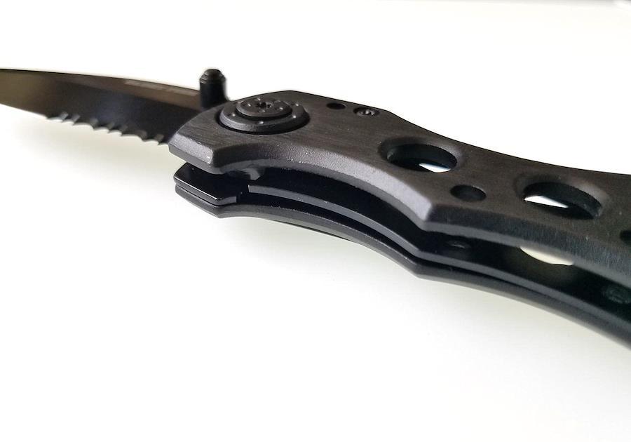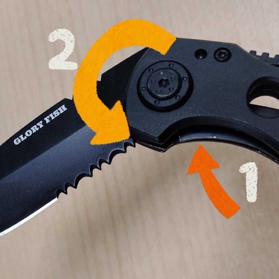 サビにくく、切れ味の良いステンレス刃仕様スライド式ロック採用、収納しやすく裏面にはクリップ付き滑りにくく手にフィットするオリジナル樹脂グリップ