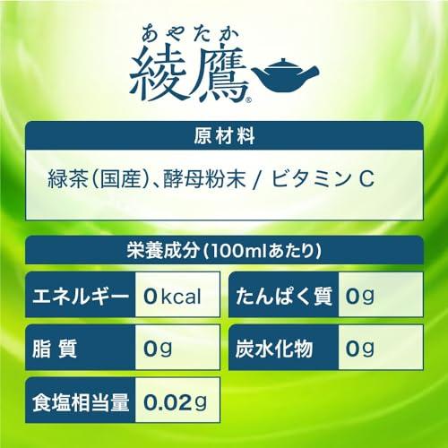 原材料:緑茶(国産)、ビタミンC内容量:525mlカロリー:【100mlあたり】0Kcal商品サイズ(高さx奥行x幅):22.1cm×41.4cm×27.8cm原産国:日本※お茶の濁りの関係上、色が商品詳細ページの画像と異なる可能性がございます。予めご了承くだいさい。【免責事項】メーカーによる商品リニューアルに伴いパッケージ(内容量も含む)変更が行われた場合、新パッケージでお届け致します事ご了承願います。