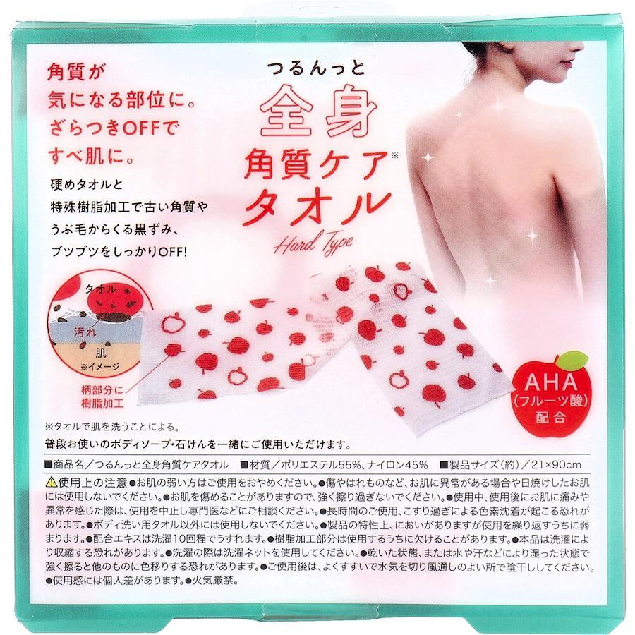 特殊樹脂加工×硬めタオルの効果で、気になるボディの黒ずみやブツブツをしっかりケア。●AHA(フルーツ酸)配合。ざらつきOFFでつるすべ肌に。●柄の部分に特殊な樹脂加工が施されており、全身の古い角質やうぶ毛などを取り除いてくれます。●水で洗うだけでも効果を発揮してくれるのも嬉しいポイント。●普段お使いのボディソープ・石けんを一緒にご使用いただけます。