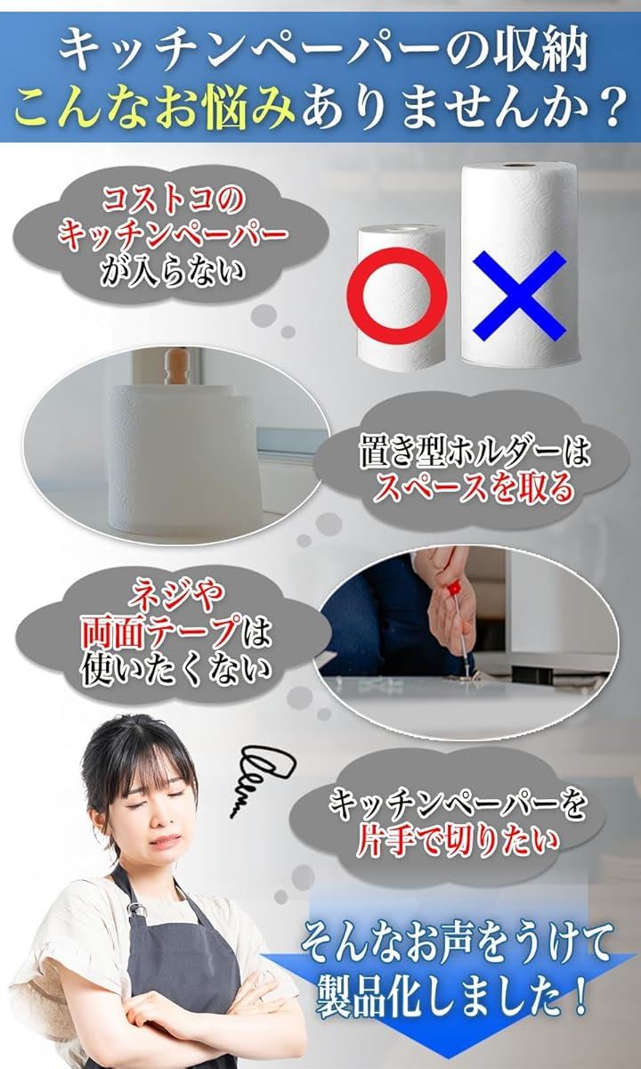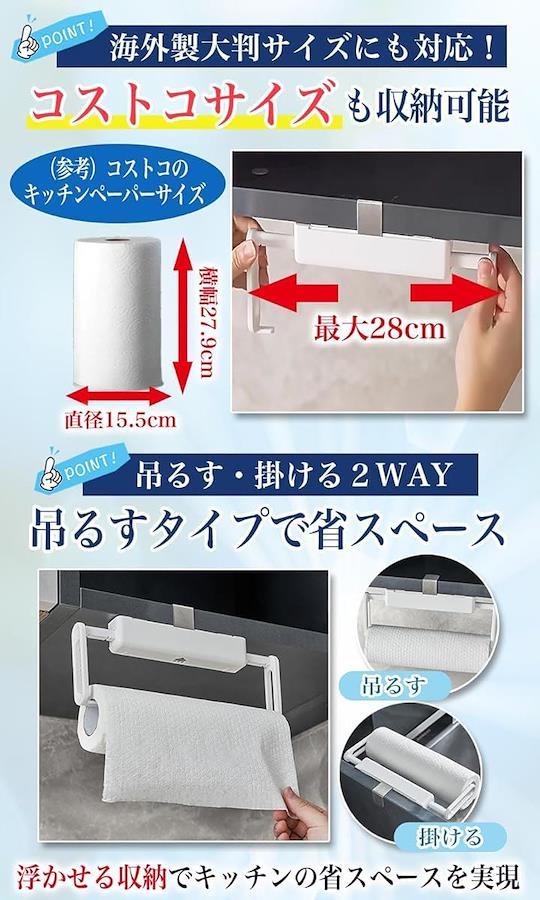 コストコサイズ対応。 超大判のキッチンペーパーもスムーズに使える設計。