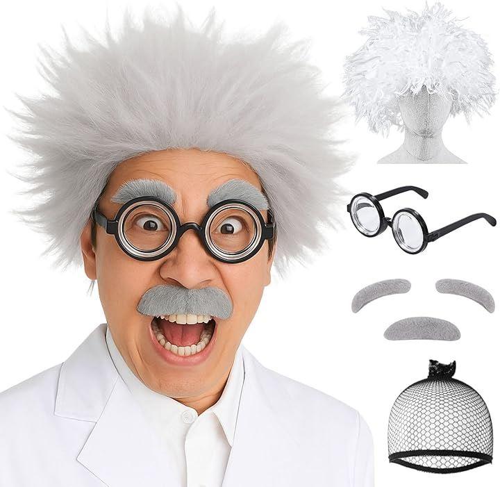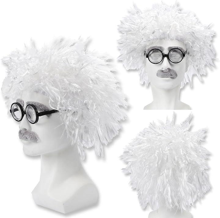アインシュタイン風や発明家、科学者、博士の仮装やコスプレ、お笑いや漫才にもぴったりなメンズウィッグ。