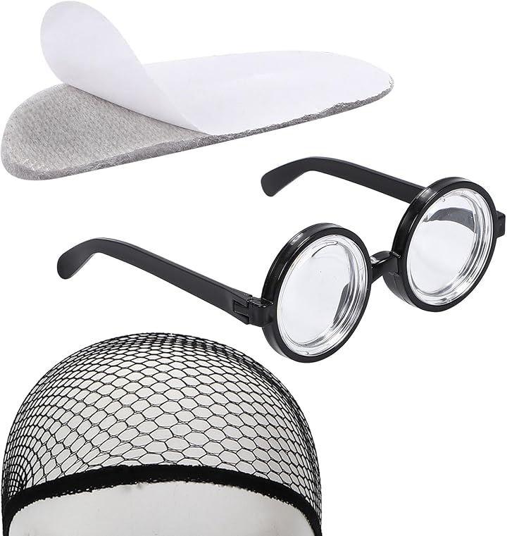 セット内容:ウィッグネット、メガネ、眉毛(眉)、髭パーツ。