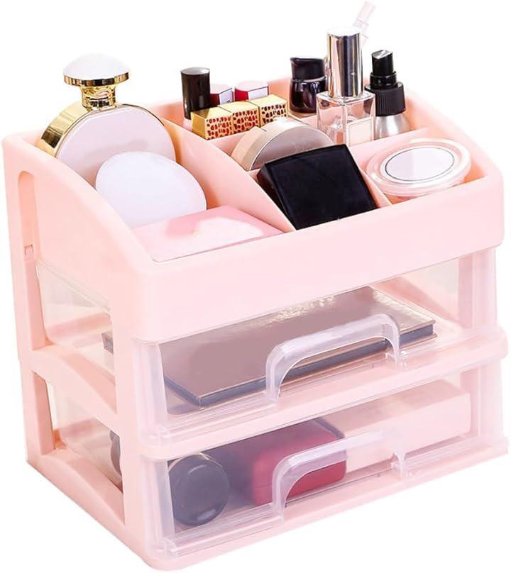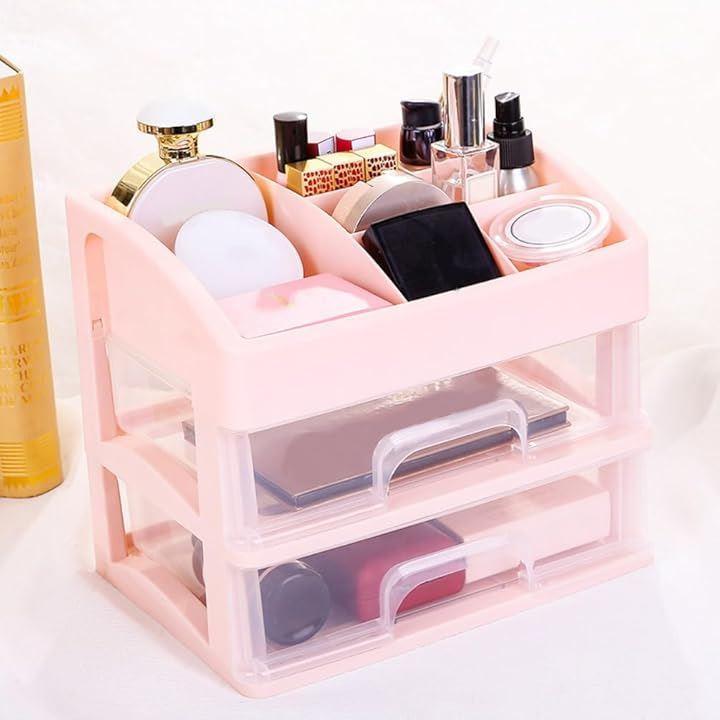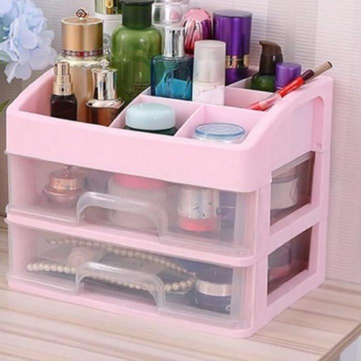 淡カラーの化粧品2段透明収納窓チェストボックスです。