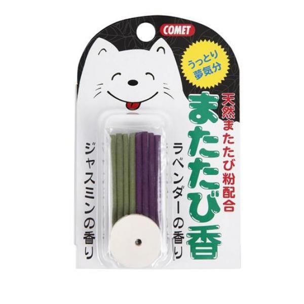製品の特徴●ラベンダー・ジャスミンの香りにまたたび粉を配合。●猫がうっとりリラックス。●お香立て付きでラベンダー・ジャスミン各4本入。