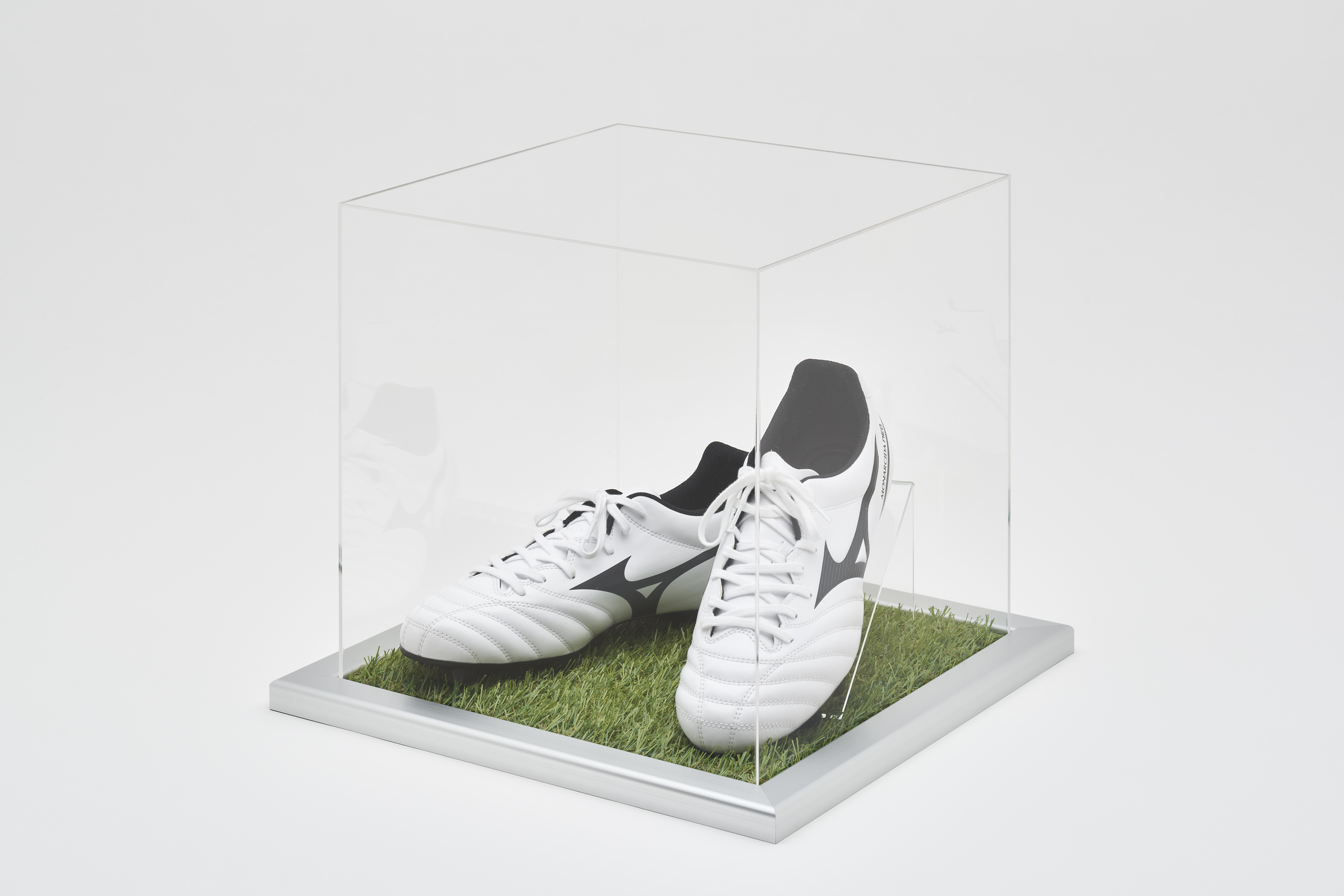 シューズ専用のアクリルスタンドをご用意しています。人工芝タイプは、国際スポーツ団体の厳しい基準をクリアした、国際試合競技会場と同品質の人工芝を使用しています。